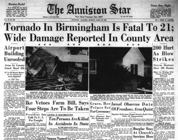 The Birmingham News put the official U.S. Weather Bureau forecast on the top of the front page back then. The paper called for Considerable cloudiness, windy and warm Sunday and Sunday night with scattered showers and thunderstorms. Winds 15 to 30 mph. Sounded like tornado weather. It was.